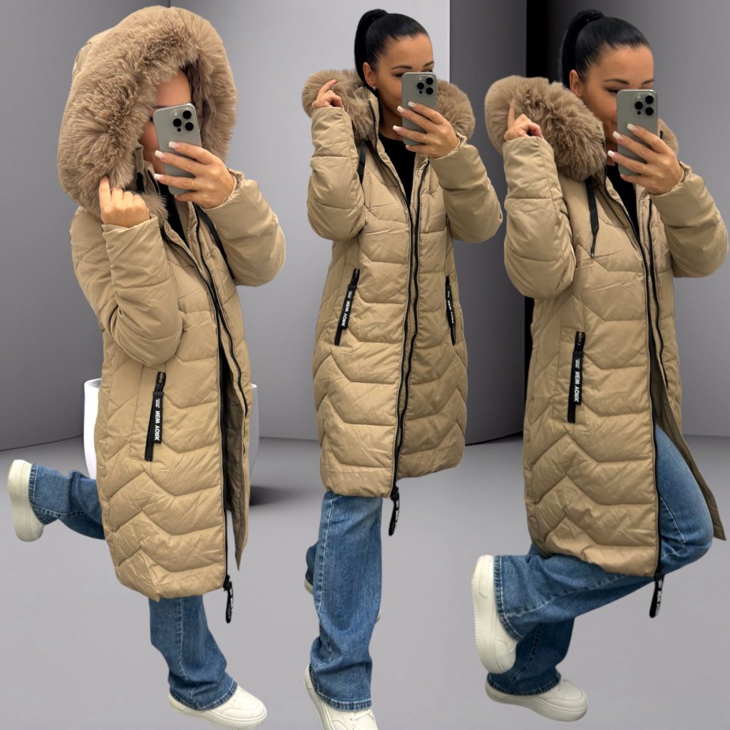 Dámská zimní bunda v delší délce pro maximální ochranu před chladem.