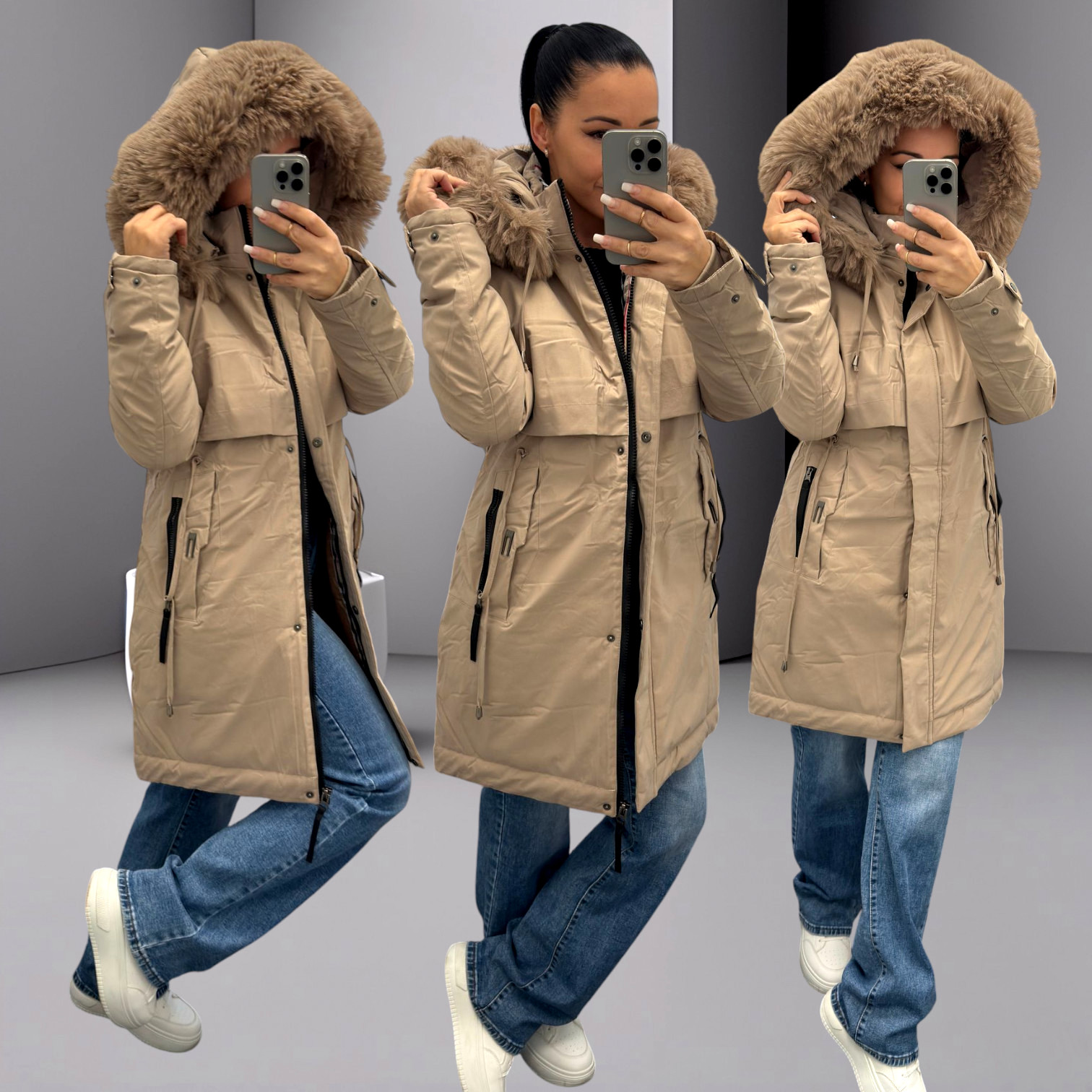 Kapuce s kožíškem, který lze odepnout podle potřeby.