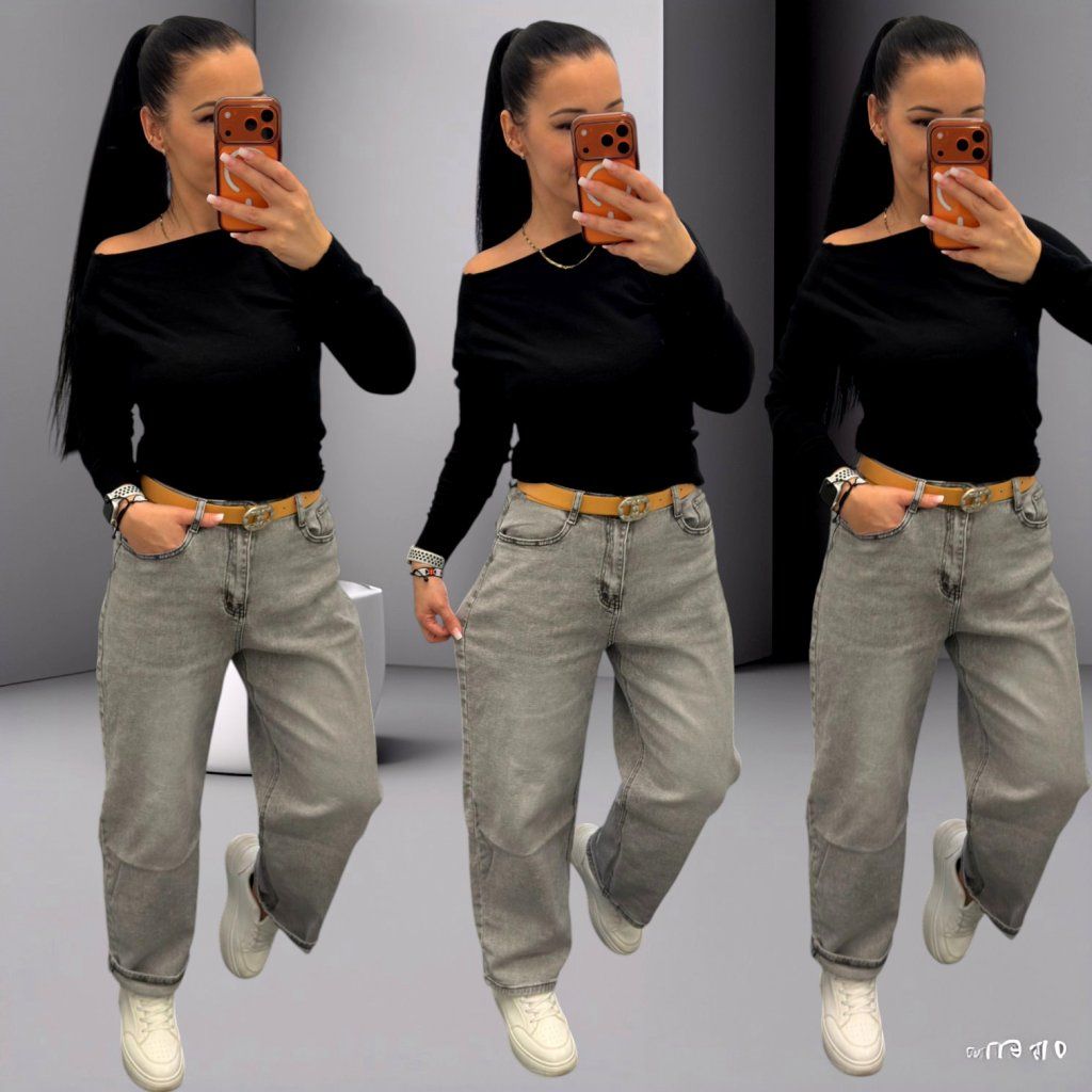 Džíny lze nosit klasicky rovně, nebo je jednoduše zahnutím proměnit na trendy „8/8“ délku, která vypadá skvěle například s teniskami. Díky univerzální šedé barvě je snadno zkombinujete s tričkem, crop topem i mikinou a vytvoříte tak stylový outfit na každý den.