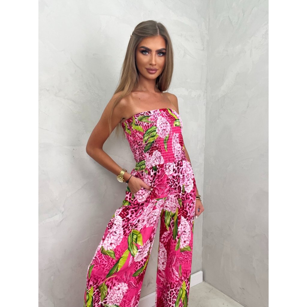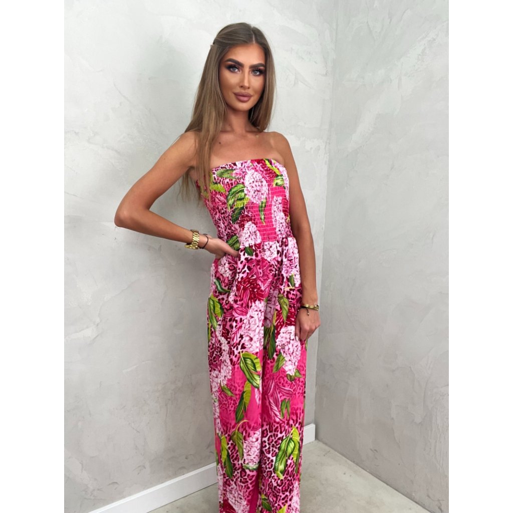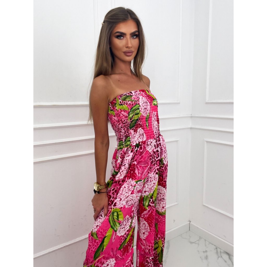 Květovaný dámský overál růžový