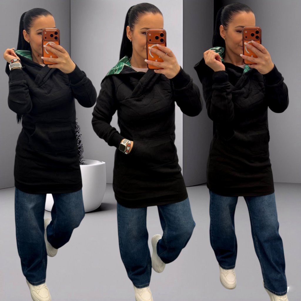 Díky prodlouženému střihu krásně kryje záda i boky, zatímco měkký, hřejivý materiál se postará o komfort po celý den. Výrazná, netradičně řešená kapuce dodává mikině moderní a originální vzhled.