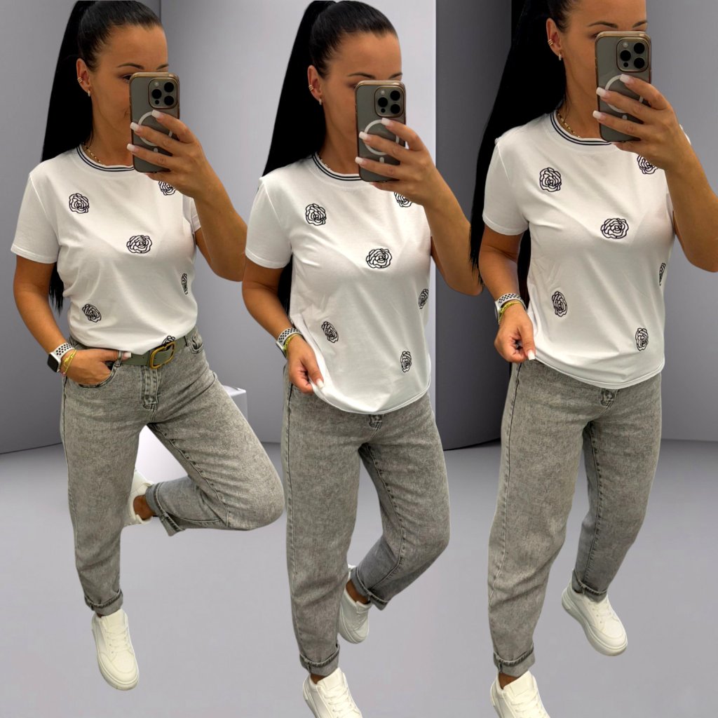 Tričko bílé s květy