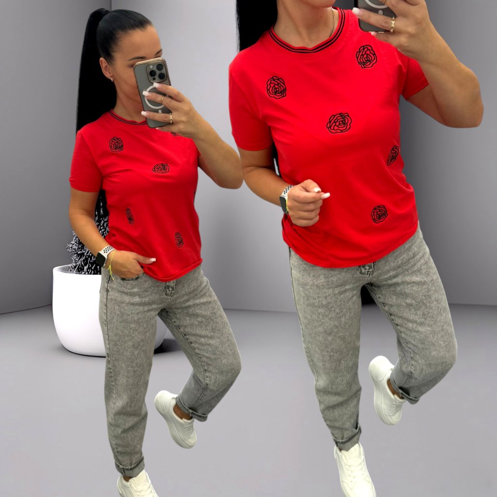 Tričko červené s květy