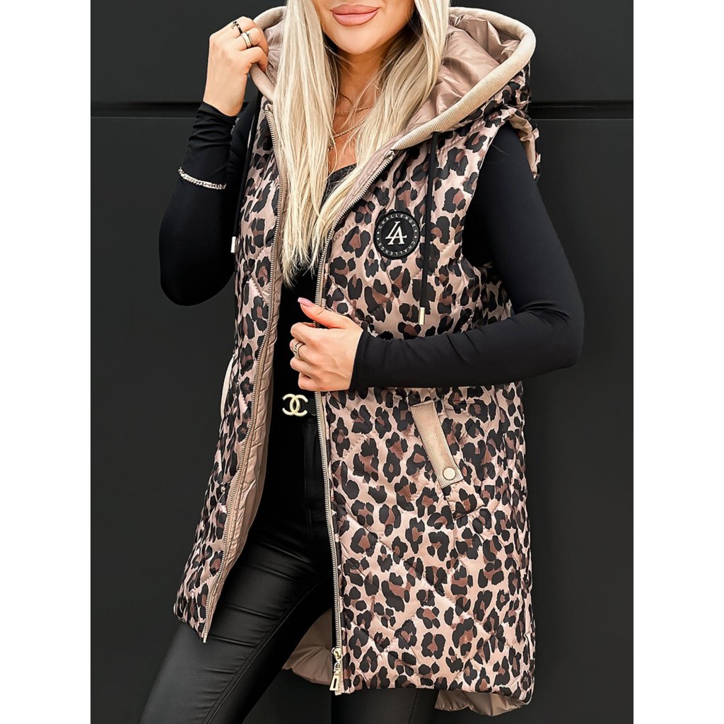 Dámská prodloužená vesta s výrazným leopardím vzorem.